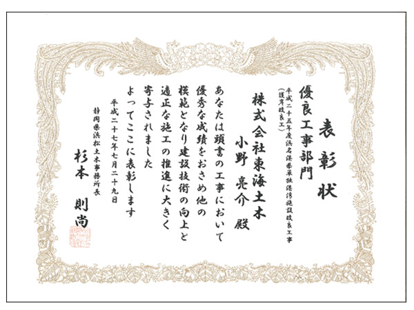 優良小規模工事部門において表彰されました。